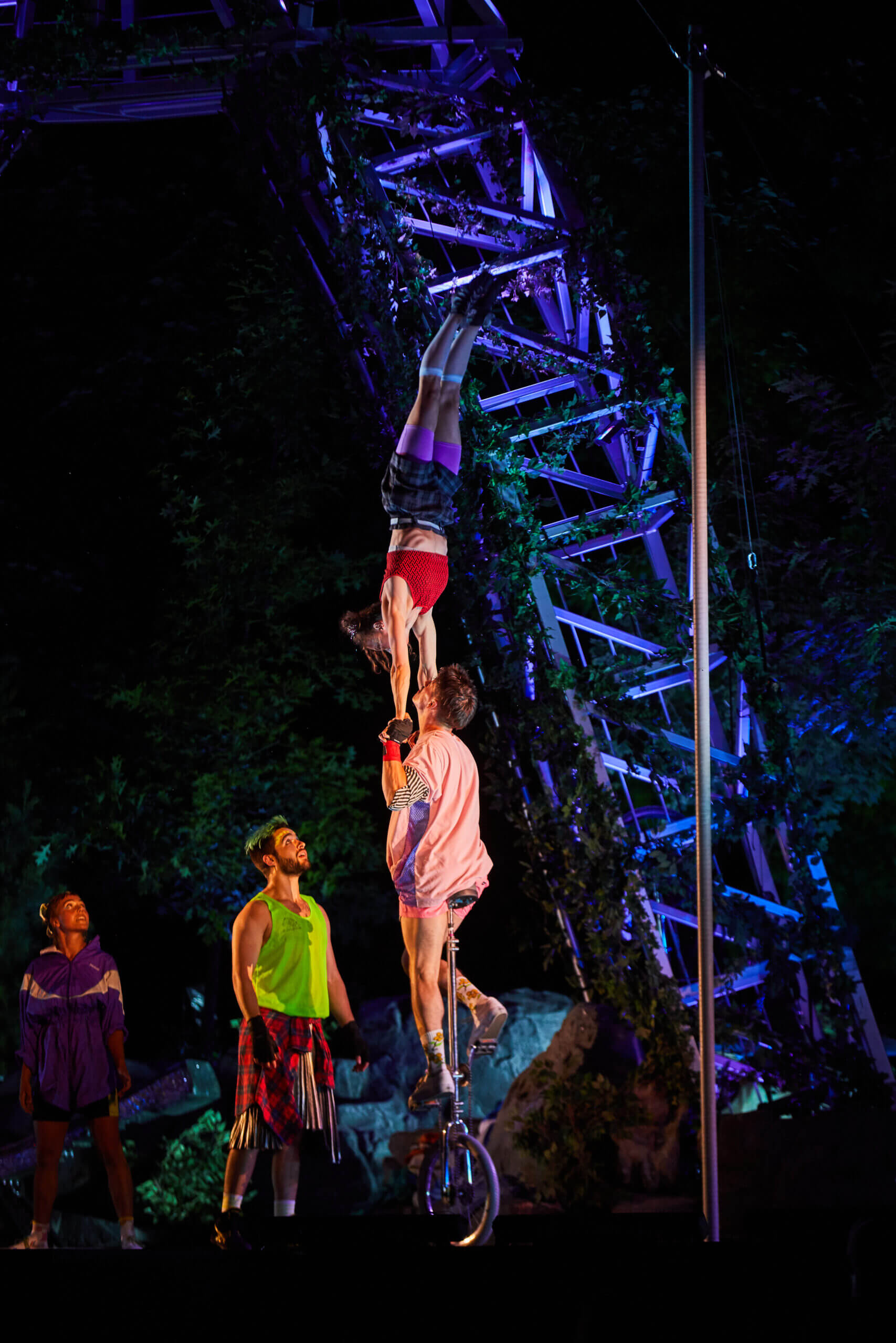 Comment devenir un géant ? Et si cette quête de grandeur n’était pas solitaire, mais plutôt collective ? Avec cette nouvelle création, Machine de Cirque vous invite à un voyage initiatique au cœur de vous-mêmes, pour y trouver ce qui est grand. Entraînée par la musique d’une DJ live, une jeunesse vibrante retourne à son état brut, se libérant des normes établies, pour réinventer le monde. Faisant face à la nature, ils surgissent de tout horizon pour répondre à ce cri du cœur qu’ils n’entendaient plus. L’espace d’un moment, cette communauté éphémère bâtira un lieu de tous les possibles où la chute et l’ascension s’entremêlent, mais où l’espoir survient toujours. Puisqu’il le faut. Influencé par les mouvements sociaux des dernières années, ce spectacle se veut une ôde aux changements, à la résilience et à la beauté qui émerge quand des solitudes deviennent un groupe. Devenir géant, tous ensemble.